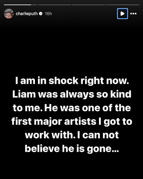 “I am in shock right now. Liam was always so kind to me. He was one of the first major artists I got to work with. I can not believe he is gone,” Puth wrote in an Instagram Story. “I’m so upset right now, may he rest in peace.”