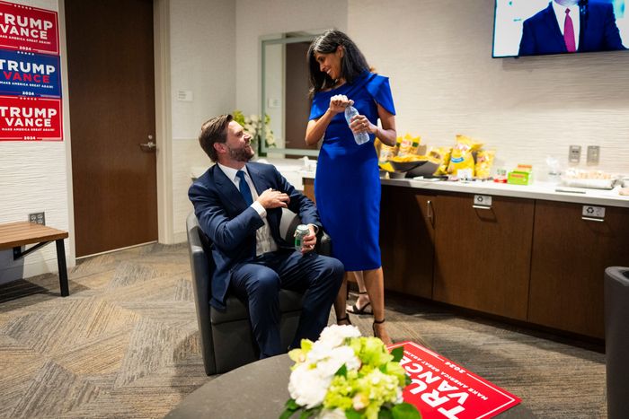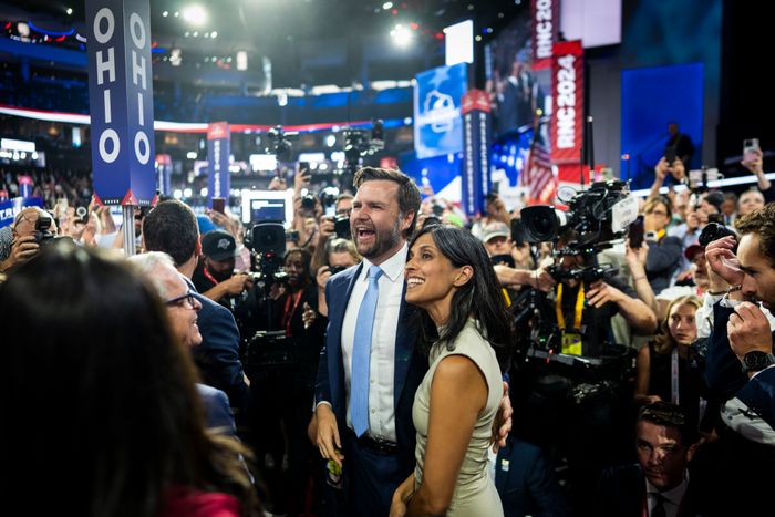 Still, in July at the RNC, Usha conspicuously avoided speaking Trump’s name in her speech. The Times reported that Usha and J.D. had worked on their speeches together, but in an interview with Fox News a few weeks after the convention, Usha made a point of saying that she didn’t show her speech to J.D. beforehand — that her words were her own. For those really squinting, looking for finer evidence of defiance, it was notable that Usha had not remade herself in Trump’s image of femininity: She hadn’t dyed her hair to cover grays; on the first night of the RNC, she wore a beige shift dress and flat mary janes.