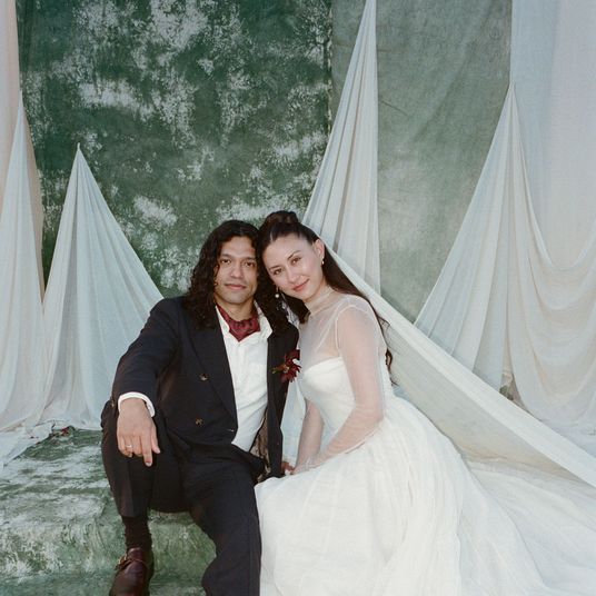 We met as eighth-grade pen pals. It’s a wild story. We had a mutual friend who moved from his town in Texas to my town in New York. And in this era, 2007 to 2008, we were all on AIM all the time and we became friends. We started talking every day. Eventually, we grew up and fell out of touch. Nearly ten years passed. We’re both 25, and I’m driving across the country and I was passing through Texas, so we met up and the rest is history. The first six months, we were long distance, but then he moved to L.A. to be with me.